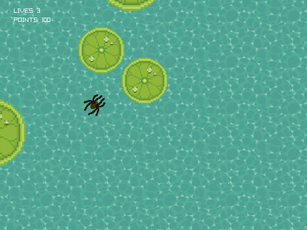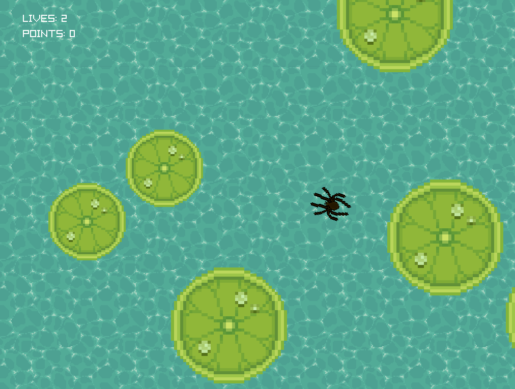 What a nice-looking pixel art, so wonderful to look at. The water is the best, and those water drops are extra nice. I had fun spinning around and shooting everywhere like a maniac (Hola soy wada)
